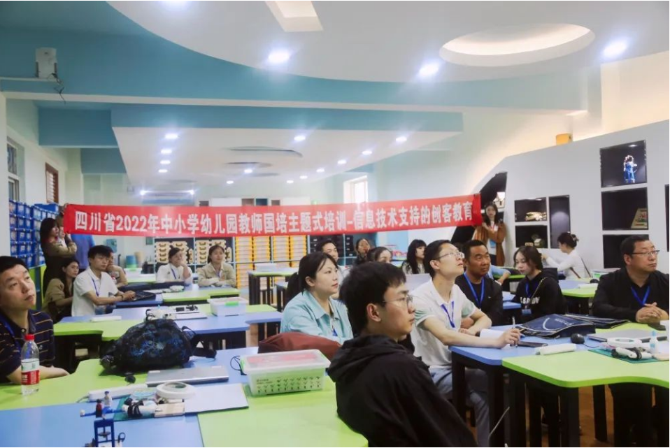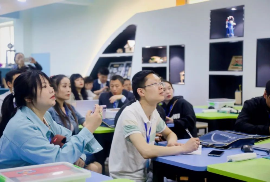 做一场研讨与创客实践。听课结束后,学员们来到各学校创客教室,开始了一场研讨与创客实践活动。面对面的沟通交流,或是经验分享,或是疑惑探讨,在场的每一个人都在彼此借鉴,相互学习,共同探索。漫漫的教育路上,学员们时刻本着求真务实的初心,展望着教育发展的未来,将遇见可知教育的繁花锦簇!