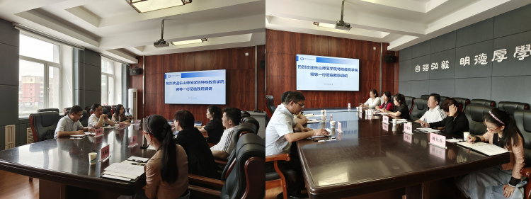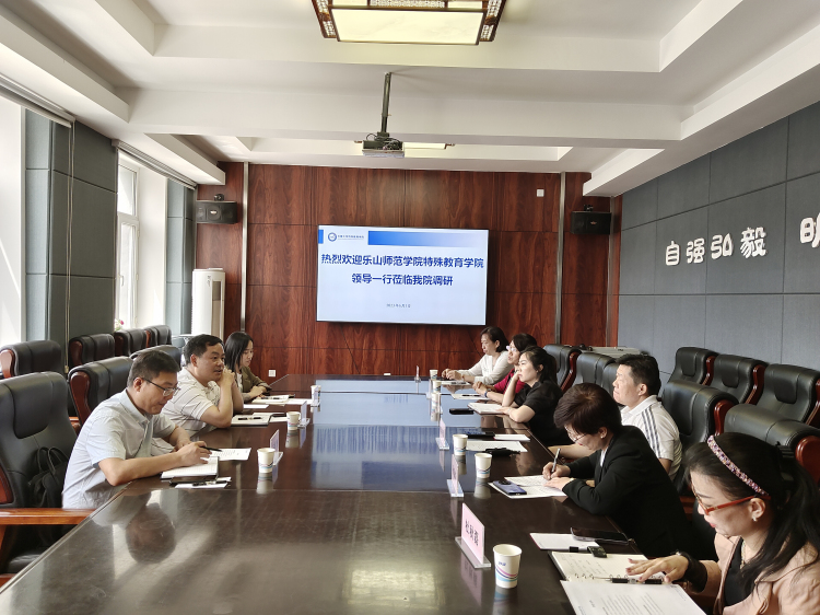 在调研座谈会上,刘宗泉介绍了本次主题教育两个主题调研的基本思考和打算,介绍了我校特殊教育事业发展的基本情况,指出了我校特殊教育历经33年发展至今面临的一些较为突出的瓶颈性问题,表达了向长春大学特殊教育学院学习并希望取到“真经”的愿望。赵利军对刘宗泉一行的到来表示欢迎,他介绍了长春大学特殊教育学院的基本情况,指出该院是中国残联与吉林省人民政府共建的国内第一所,同时也是亚洲第一所高等特殊教育学院,不仅开创了我国听障、视障群体接受高等教育的先河,而且构建并完善了我国听障、视障高等教育人才培养体系。他介绍了该院教学系设置,普通学生、不同类别残疾人学生就读的专业设置,各专业全国招生,近年招生报到,毕业生特别是残疾人本科和硕士毕业生就业等的基本情况。他指出,目前该院正在思考适度减少残疾人本科学生招生数量,扩大残疾人研究生招生规模,在错位发展中继续推动该院残疾人高等教育高质量发展的可行性、必要性,助力全国相关高校在不同类别、不同层次残疾人高等教育的特色发展。随后,长春大学特殊教育学院针灸推拿系主任赵忠伟、康复治疗系主任史勇、特殊教育系主任杜艳飞、艺术设计系主任杜秋磊分别介绍了各教学系专业设置、人才培养方案、招生规模、师资力量、教学运行、人才培养质量、学生创业就业等基本情况,还特别应询指出了残疾人大学生毕业“出口畅”和招生“入口旺”的正相关紧密联系,强调了残疾人高等教育专业人才培养方案基于“三回归”的生活性、职业性、应用型的重要性,为我校特殊教育相关专业人才培养方案的修订指明了方向和重点。会上,双方还就残疾人高等教育的拨款经费、师资队伍建设、教学运行管理、学生工作等进行了广泛深入交流。