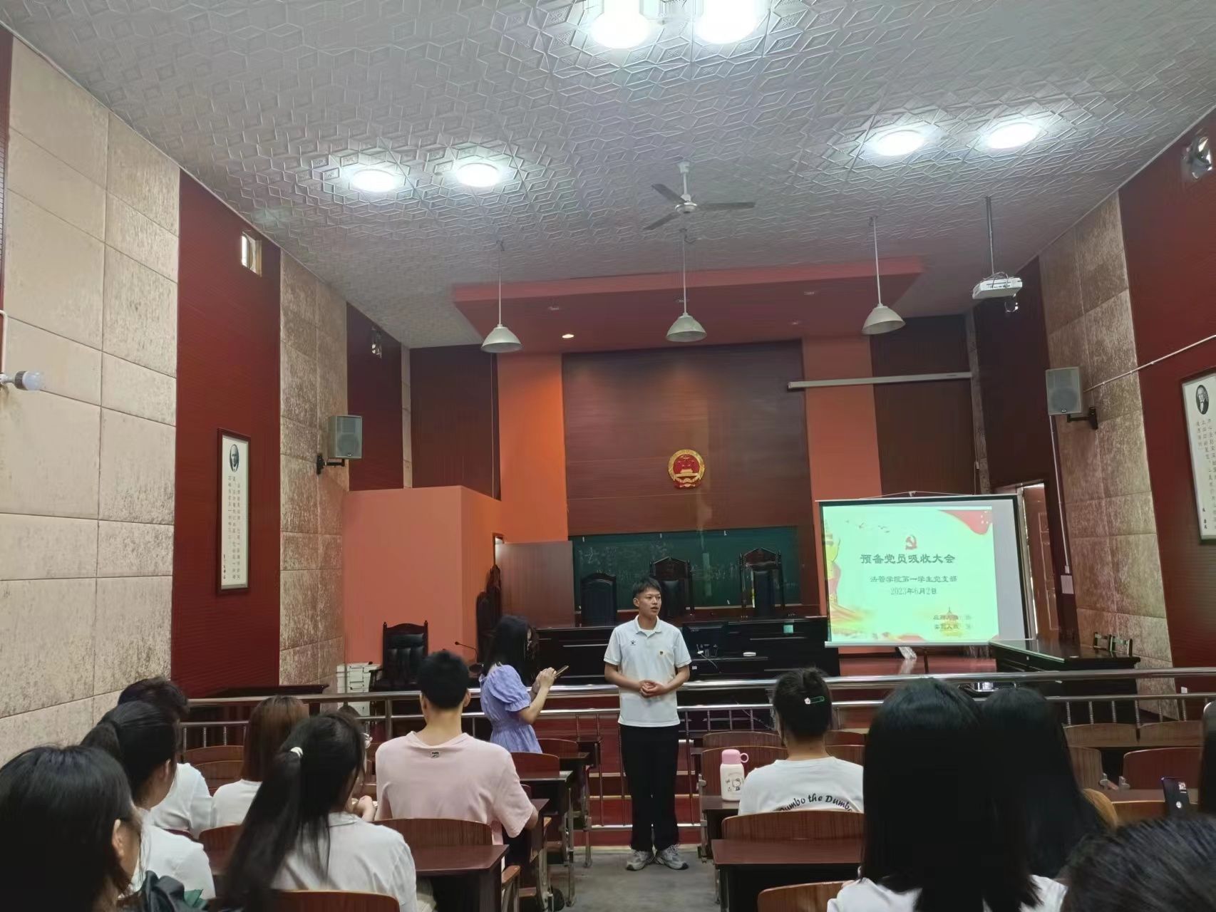 本网讯(文图/何叶)为了壮大党员队伍,优化党员队伍结构,促进党组织不断发展。6月2日下午,法学与公共管理学院于博雅楼模拟法庭开展第一、二学生党支部预备党员吸收大会。