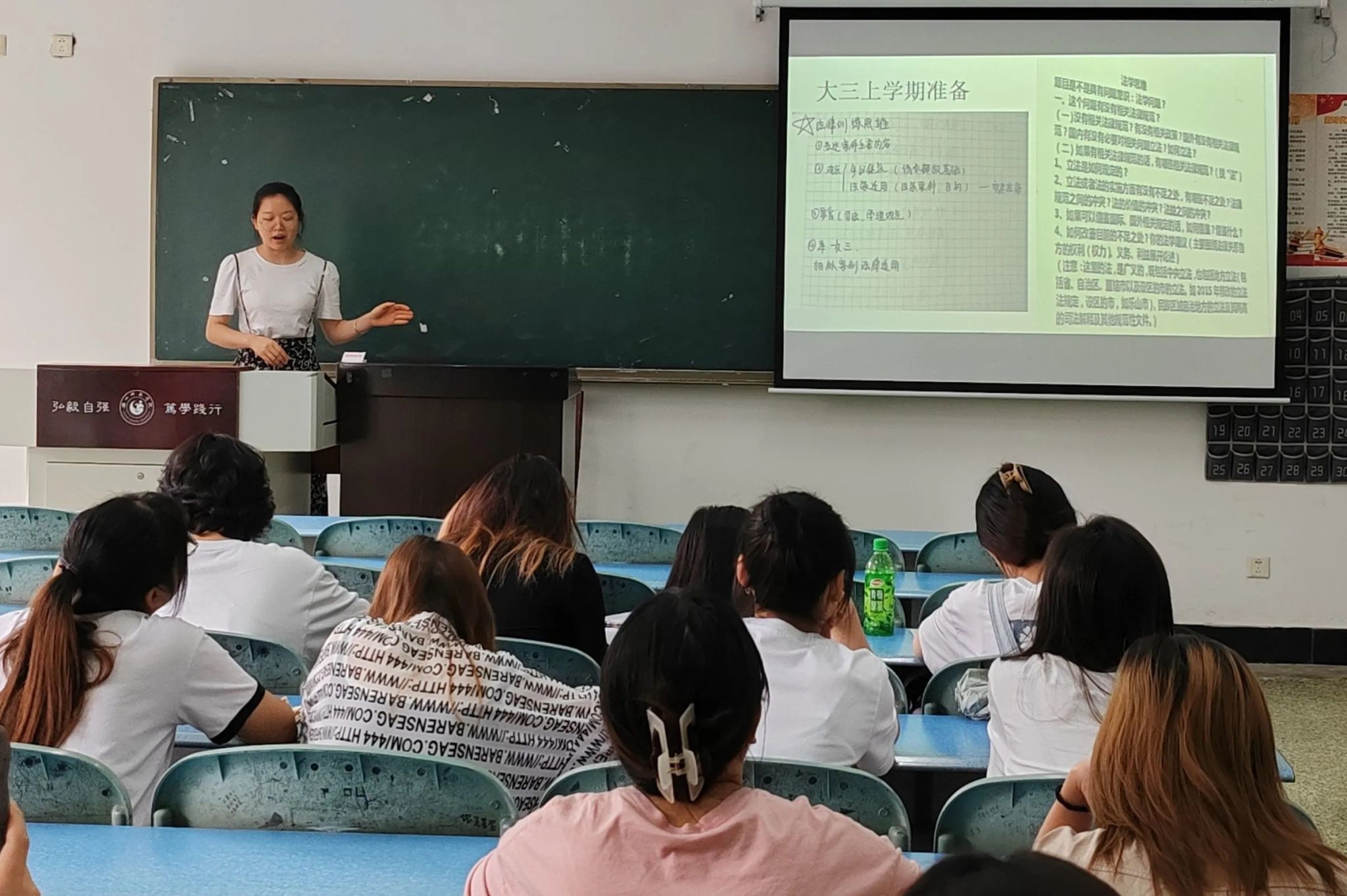 学院党委副书记翟雅媛、学生科长杨兵、辅导员许若星分别在教室给三个专业的学生动员,鼓励他们早定目标,静下心来积极准备。