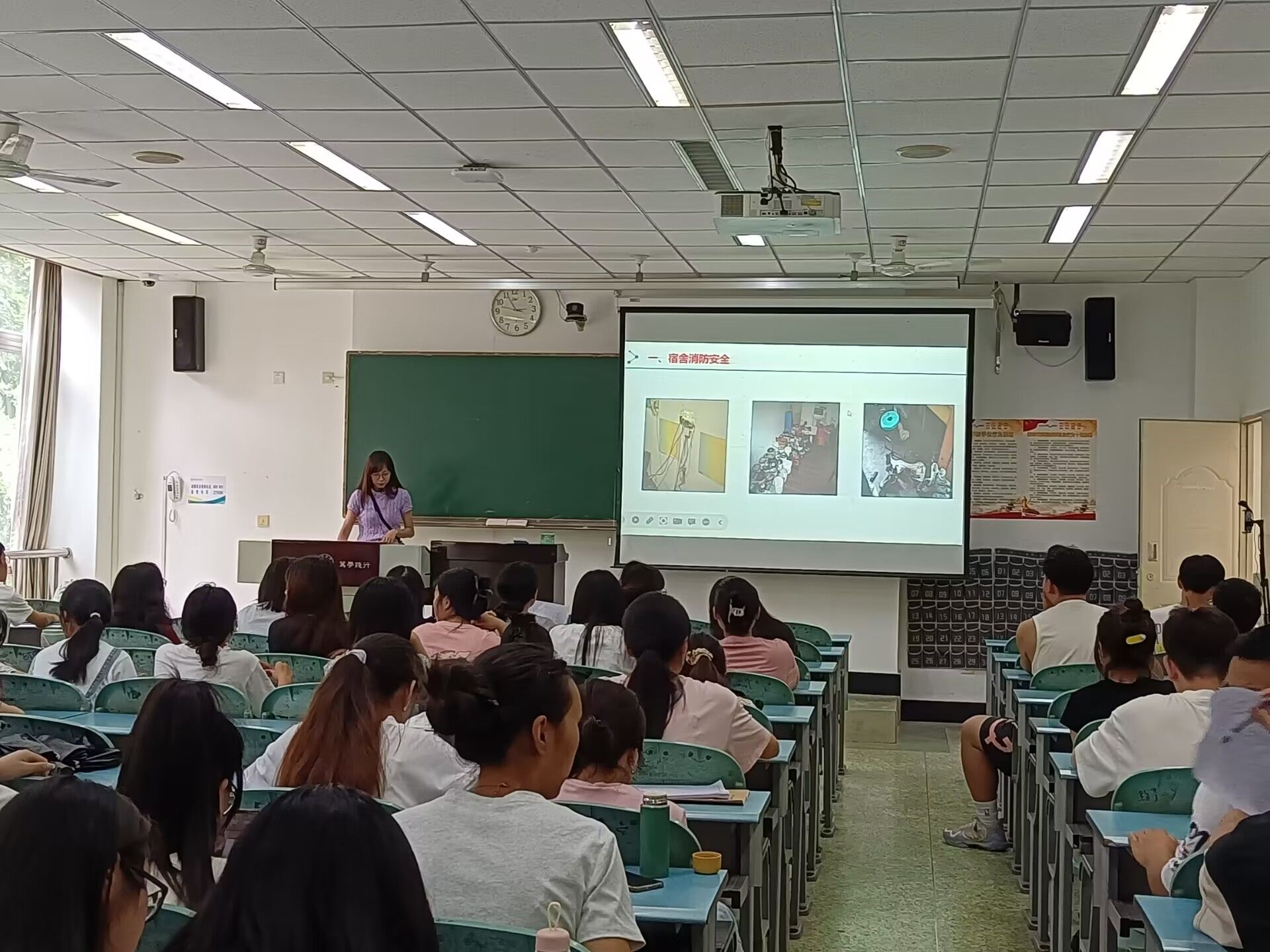 学生科长杨兵强调了安全教育的重要性以及校园安全的注意事项。辅导员许若星结合以往学生受骗案例、制作购买电瓶车假证等违法国家相关法律法规的案例,给全体学生进行了反诈宣讲,遵守国家法律法规,以及保护自身生命财产安全等各方面进行安全教育。各位老师就学生寝室管理提出相关要求,从加强寝室卫生管理,加强学生安全教育,注意寝室安全等方面进行了强调。