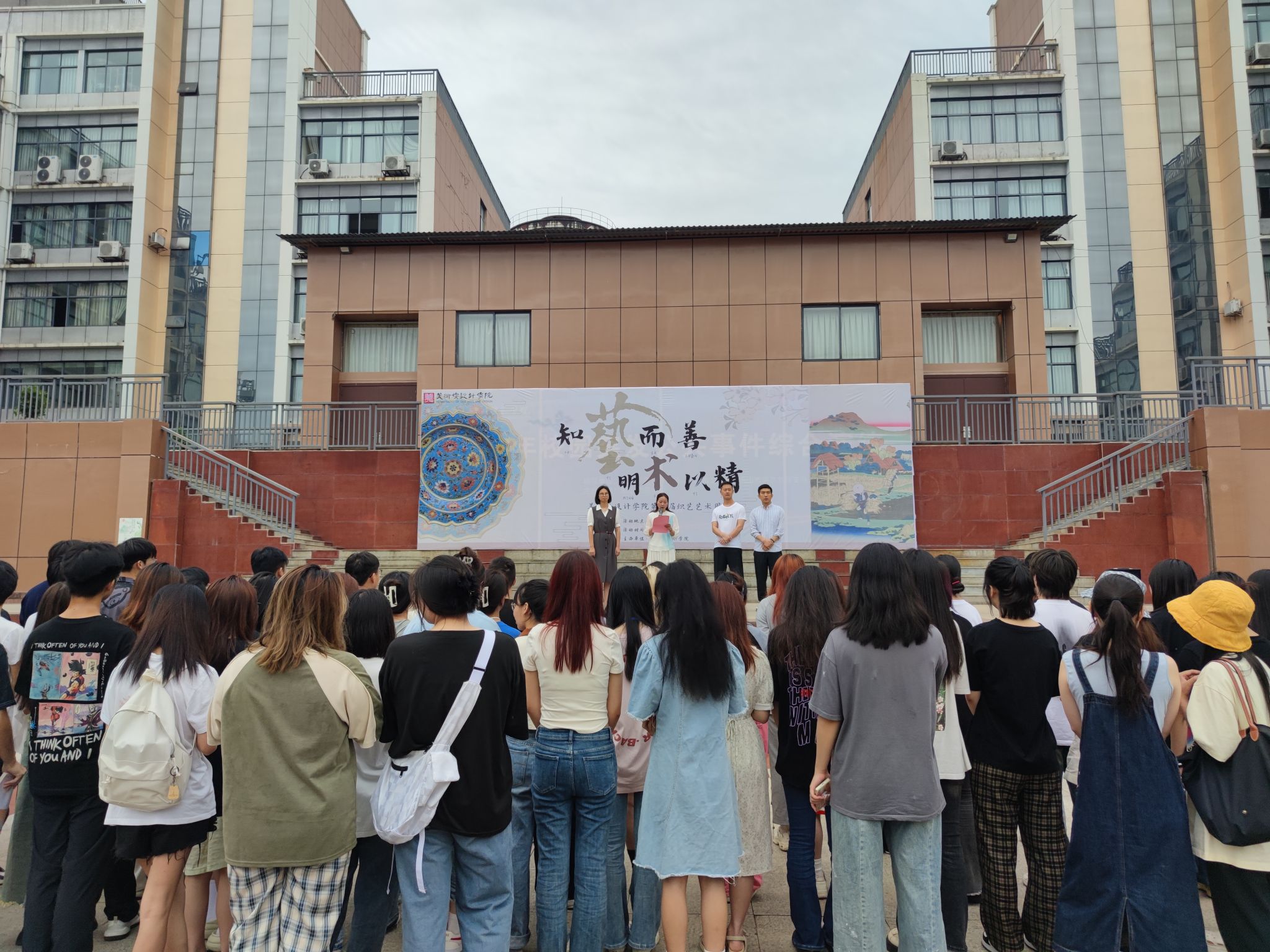 本网讯(文/赵晗屹 图/胡思琪)6月9日,美术与设计学院在桂花广场成功举办第二届织艺艺术周暨 “美育暖心”活动。上午9点30分,艺术周举行了简短的开幕式,学生工作部副部长陶媛,美术与设计学院党委副书记王孝琴,辅导员崔玉、任自林、刘桐江及部分学生代表参加。王孝琴代表学院致开幕辞,希望此次活动的开展能进一步将美育与心理健康教育、劳动教育相结合,培养更多的德智体美劳全面发展的高素质人才,最后由陶媛宣布艺术周开幕。