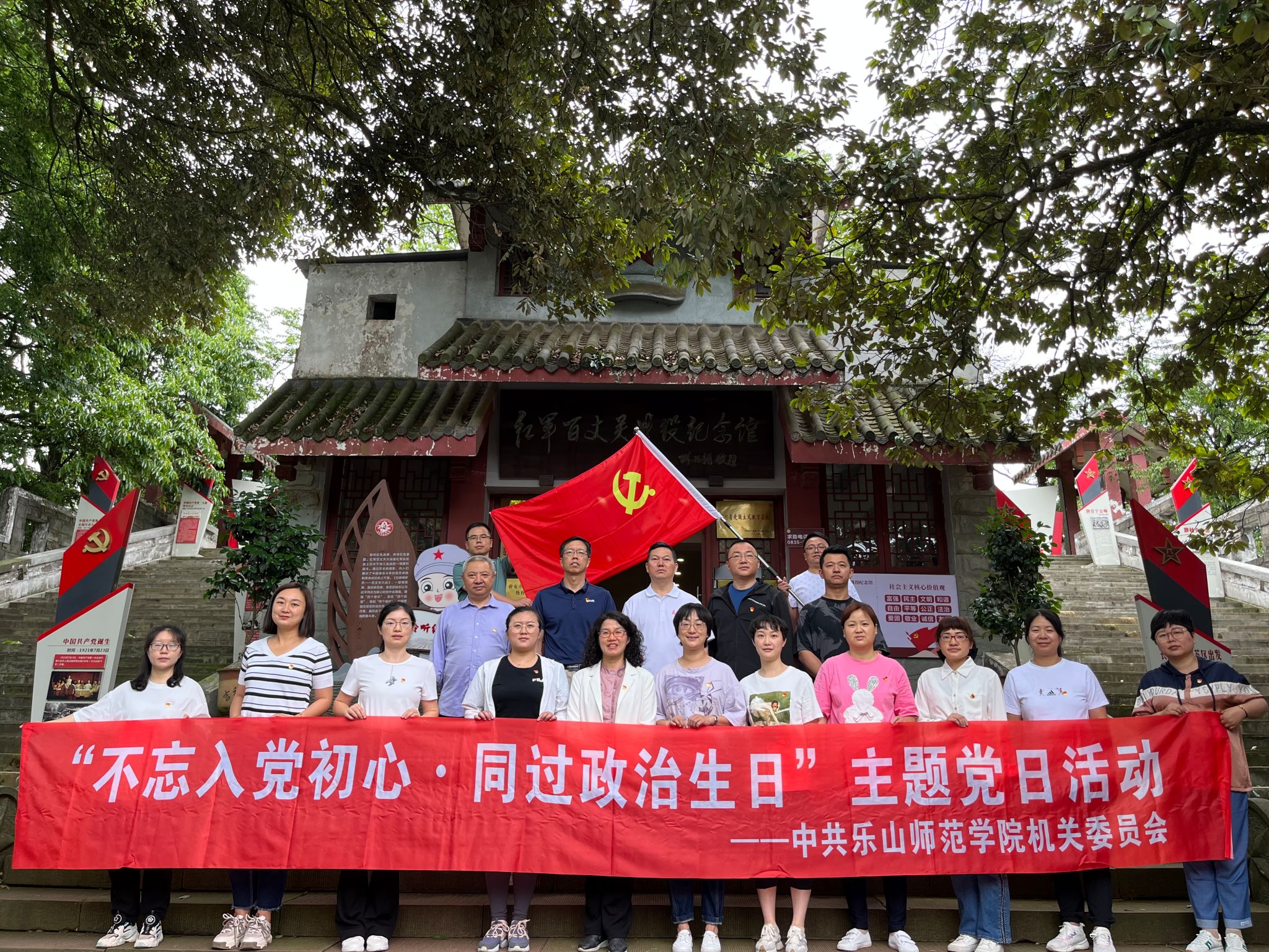 本网讯(文/刘艳萍 图/王雪猛)6月8日,机关党委组织20余名党员干部赴雅安红军百丈关战役纪念馆开展学习贯彻习近平新时代中国特色社会主义思想主题教育现场教学暨“不忘入党初心 同过政治生日”主题党日活动。分管校领导校党委副书记、纪委书记彭尚源全程指导活动开展,党委常委、副校长李朝晖作为入党整十年党员代表参加活动。