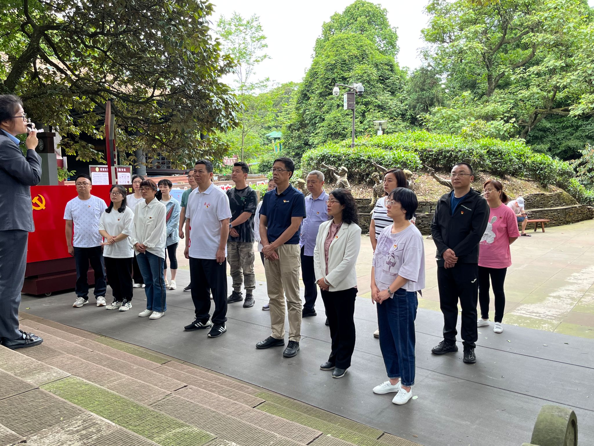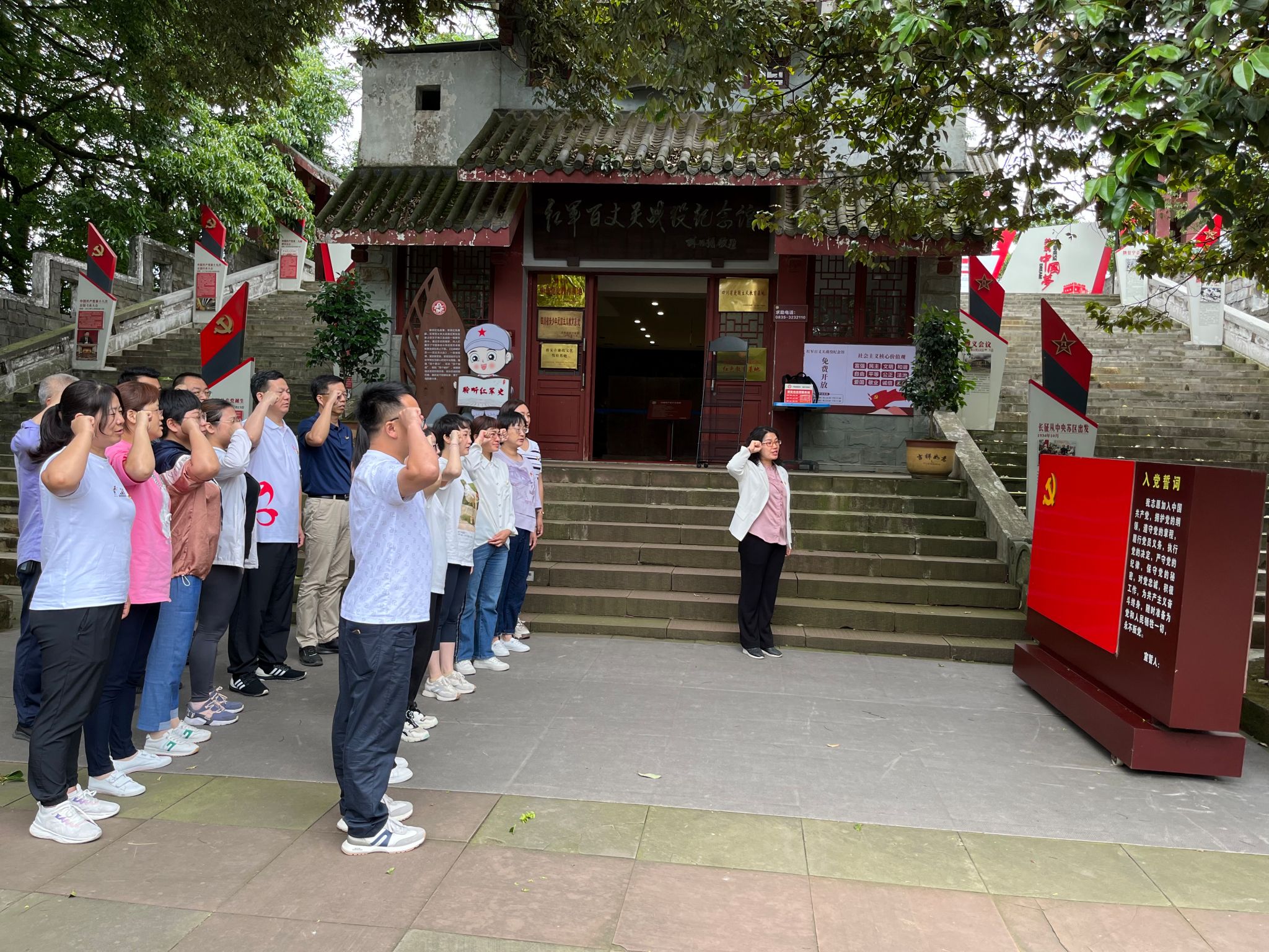 参观完纪念馆,大家聆听了王小苹老师的“忆峥嵘岁月——百丈关大战”微党课,王老师声情并茂地讲述了这场战役的悲壮与惨烈,讲述了革命先辈浴血奋战、舍生忘死的英雄事迹。大家心潮起伏,深刻感受到红军长征的不易,感受到我们的党从建立到走向强大经历了无数艰难曲折,也让我们领悟到只有牢记昨日的苦难辉煌,才能无愧今日的使命担当,不负明天的伟大梦想。随后,全体党员面向党旗重温了入党誓词。