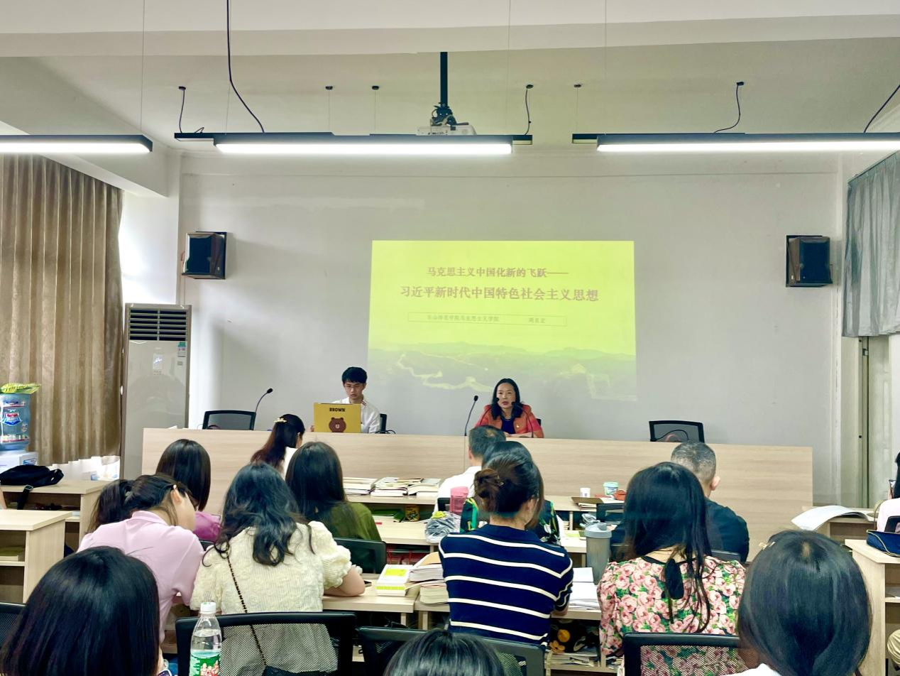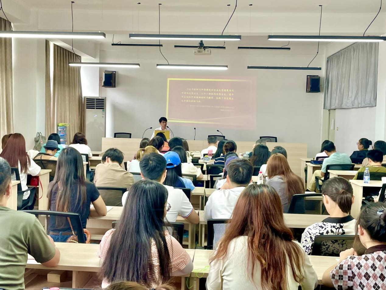 本网讯(文/胡诗英 图/任自林)6月8日中午,美术与设计学院党委在旷怡楼705教室开展“马克思主义中国化新的飞跃——习近平新时代中国特色社会主义思想”主题教育理论宣讲,由党委书记杨虹主持,马克思主义学院教师周袁宏主讲,学院全体党员师生参加学习。