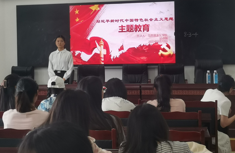 本网讯(文/李健萍 图/卓如意)6月12日中午,特殊教育学院党委所属庆瑶阳光第一和第二两个学生党支部,在特教大楼A-406培训室联合举行了学习贯彻习近平新时代中国特色社会主义思想主题教育理论宣讲会。宣讲会邀请学校主题教育学生宣讲团成员梁诗琪主讲,两个学生党支部的全体学生党员、预备党员聆听了宣讲。宣讲会由学院专职组织员李红主持。