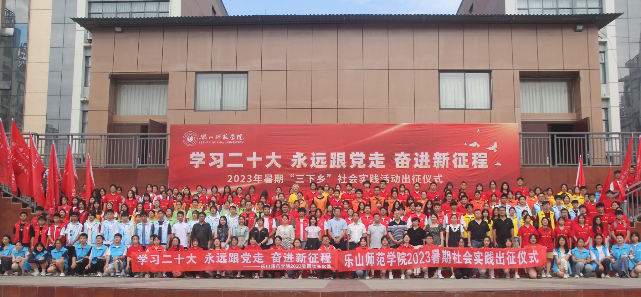 仪式上,学校党委常委、副校长李朝晖宣布:“学习二十大、永远跟党走、奋进新征程”2023年暑期“三下乡”社会实践活动出征。