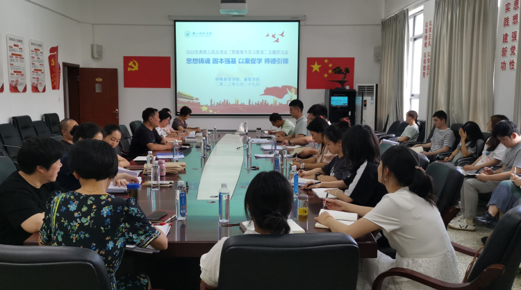 本网讯(文 图/张敏) 6月29日,特殊教育学院党委在特教大楼A-408会议室,举行了学习贯彻习近平新时代中国特色社会主义思想主题教育教职工政治理论专题学习会,开展师德集中学习教育,学院全体教职工参加了学习会。学习会由学院党委书记刘宗泉主持。