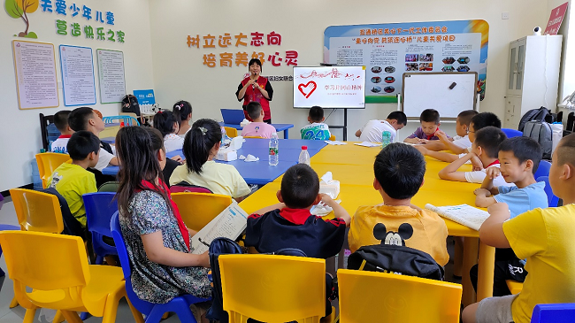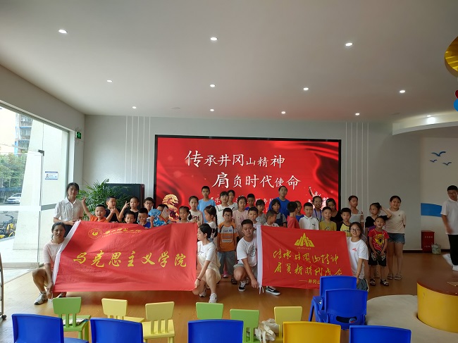 本网讯(文/曾文静图/施翔耀)为深入弘扬井冈山精神,激发少年儿童的爱国主义情怀。7月5日下午,由乐山师范学院马克思主义学院和旅游与地理科学学院组成的全国大学生“井冈山”精神宣讲团队——乐师星星之火服务队,到乐山市五通桥区杨柳镇青龙村儿童服务站进行“井冈山”精神宣讲。本次活动于下午十三点三十分活动开始,时长共90分钟,共服务站点学生及家长30余人。