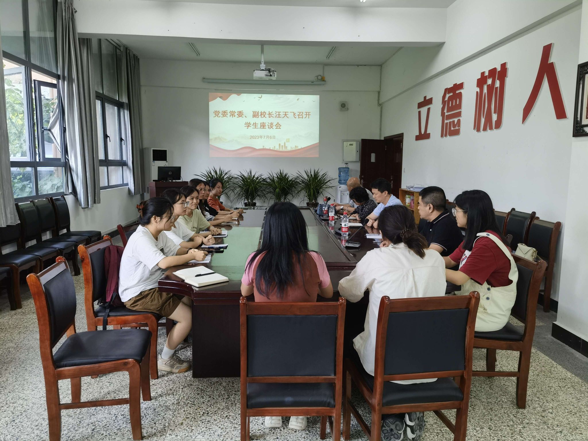 随后,汪天飞与联系的教育科学学院第二学生党支部的部分党员以及留校考研的部分学生党员、入党积极分子开展座谈,与学生党员进行亲切交流,汪天飞联系的2021级小学教育专业学生党员唐菀也参加了座谈会。他仔细询问了同学们开展主题教育的情况以及备考研究生的进度,建议同学们将课程学习与主题教育相结合,坚持学以致用、用以促学、学用结合。汪天飞为考研同学们提出几点建议,一是学业再繁忙也要关注时事政治,读原著、学原文、悟原理;二是深刻理解中国式现代化的内涵及特征,作为教科学子,应当立志成为教育教学理论扎实和教学技能过硬的高素质应用型人才;三是关注就业现状,鼓励同学们先就业再择业,练好内功等待机会的到来。最后汪天飞叮嘱同学们协调好学习与休息的时间,祝愿同学们心想事成、顺利考上心仪的学校,明年夏天一起分享胜利的喜悦!在座的学生党员、入党积极分子深受鼓舞,纷纷表示:一定不辜负学校领导的嘱托,认真开展好主题教育,积极备战考研,在思想上、学业上锐意进取、拼搏奋进,不负时代、不负韶华。