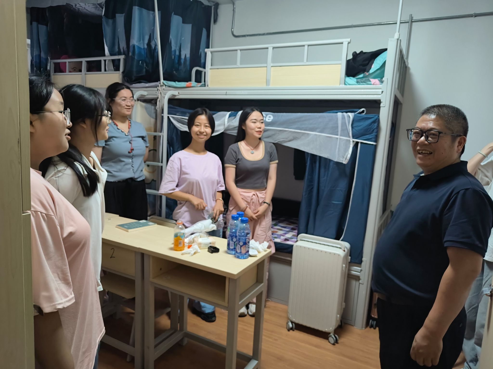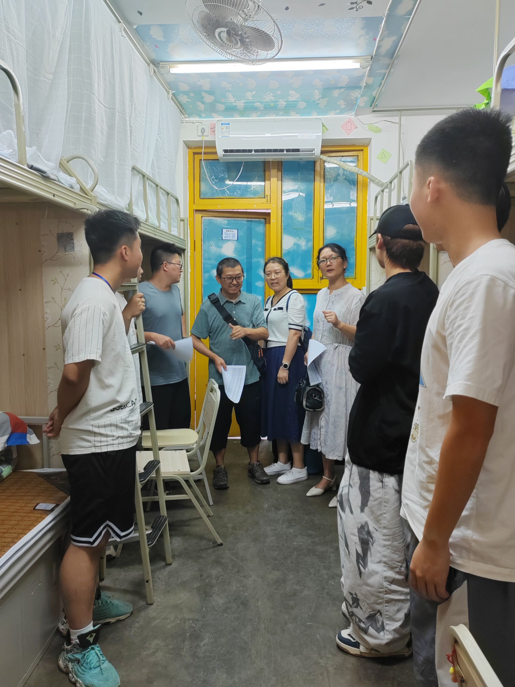 本网讯(文/李书贤 图/乔敏佳)金秋九月,桂花飘香,2023级新生也来到了梦想的大学。为了解学生适应学校情况,关心关爱学生,9月8日晚,美术与设计学院院长熊泽文、党委副书记王孝琴、副院长熊火花、门涛、部分班主任、辅导员吴嘉川、崔玉以及学生干部分组走访了新生寝室十幢、十九幢、百果苑一、二幢,对新生送去慰问和关怀。