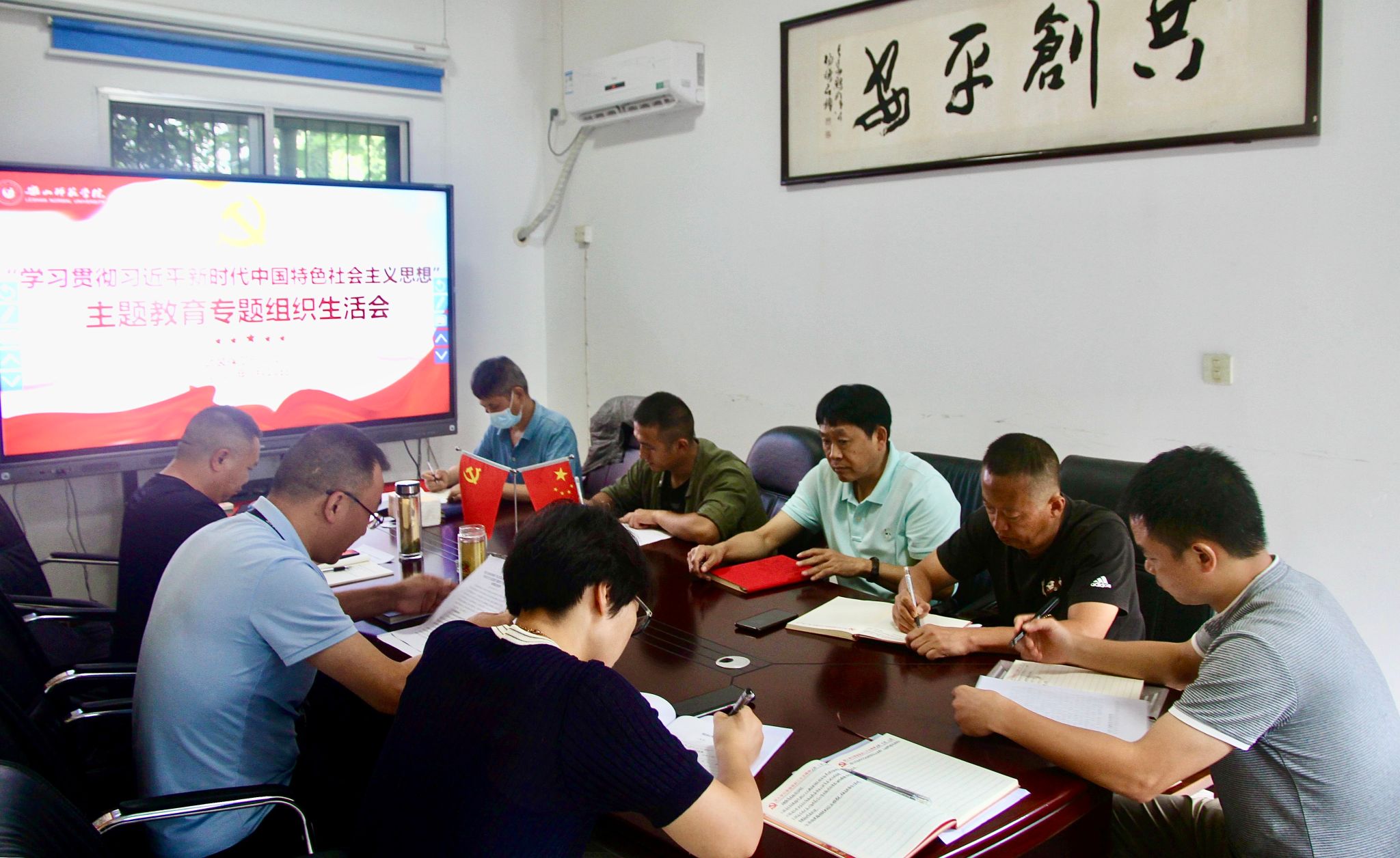 本网讯(文/吴天人 图/薛小丽)根据《中共乐山师范学院委员会关于开展“学习贯彻习近平新时代中国特色社会主义思想”主题教育专题组织生活会的通知》精神,9月11日,学校武装保卫部党支部组织支部全体党员召开“学习贯彻习近平新时代中国特色社会主义思想”主题教育专题组织生活会。会议由武装保卫部党支部书记贾洪鉴主持。