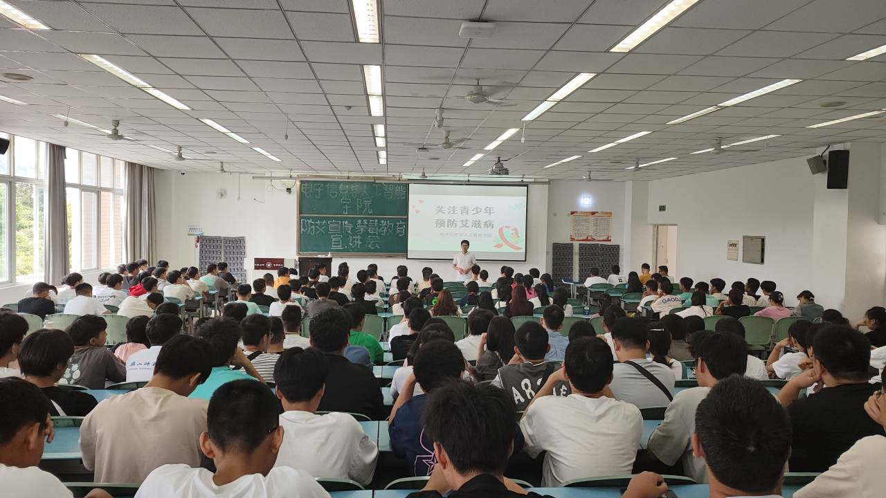 紧接着雷雄锴向同学们介绍了艾滋病的相关知识,分别从艾滋病是什么、传播途径以及艾滋病带来的危害等几个方面展开讲解,希望同学们提高自我保护意识。最后,雷雄锴鼓励同学们积极提问,并就同学们的疑问都一一进行了解答,整个讲座氛围极其融洽。