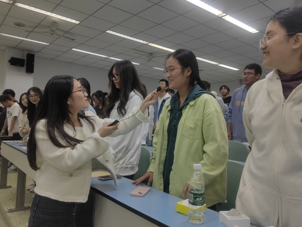 讲座伊始,廖老师用暖身游戏开启了本次讲座,互动环节饶有兴趣,现场气氛十分活跃,同学们在廖老师带动下敞开心扉,积极地参与到讲座之中。