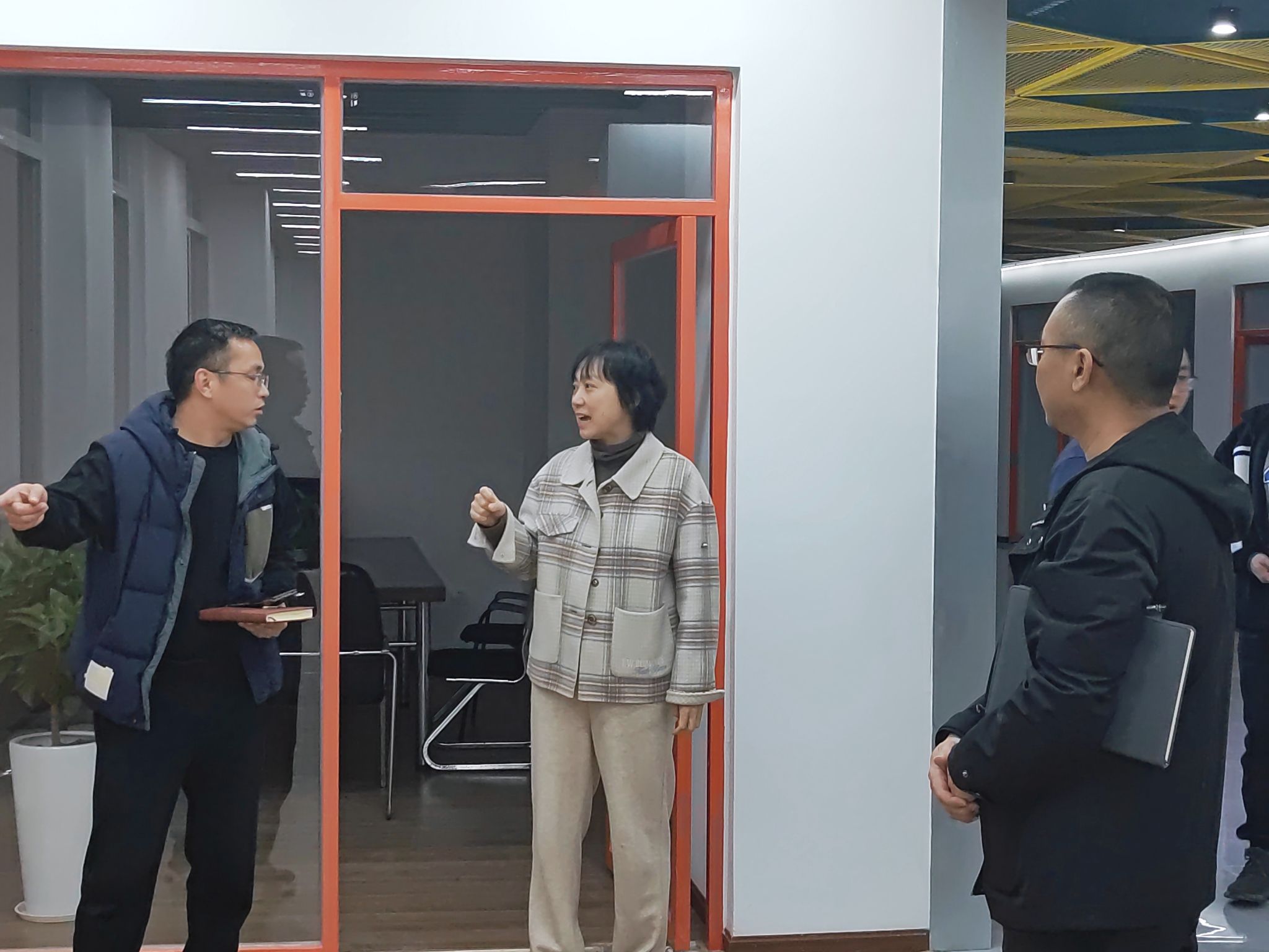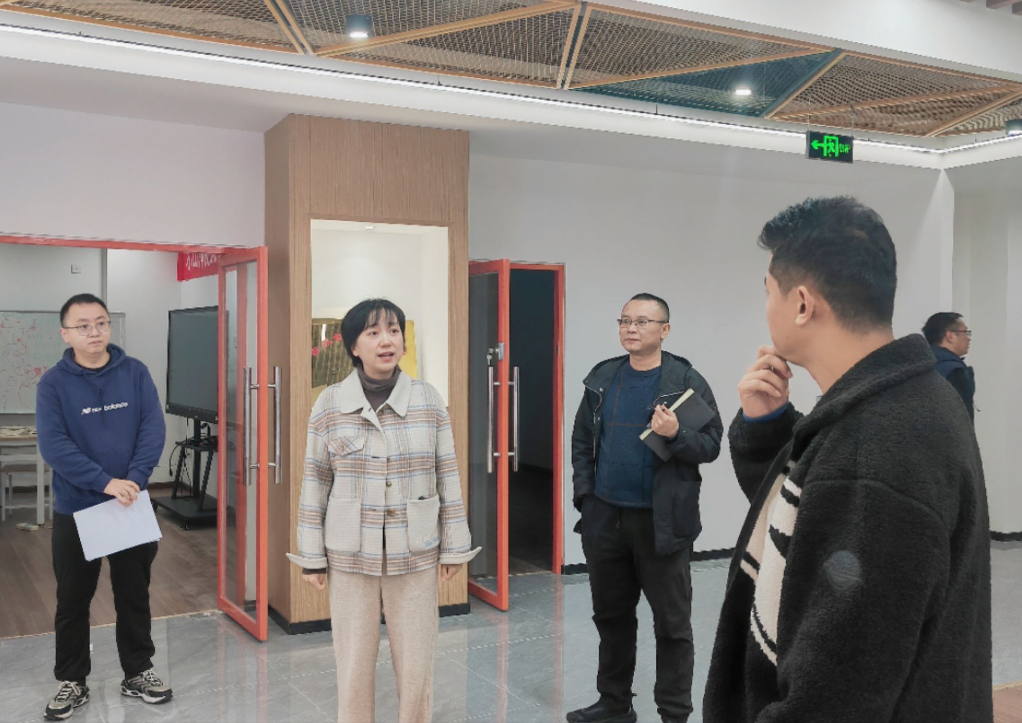 彭巧胤带领大家参观了孵化园一、二期,并对每间房间的预计使用方式以及使用进度进行了介绍。当前,在学校领导、学校各个部门的关心帮助下,孵化园二期已经基本完成硬装,周五将进行申请入驻项目评审,紧接着将完成办公室分配,以及室内装修布置,并争取在十二月中旬呈现第一阶段的室内装修的效果。